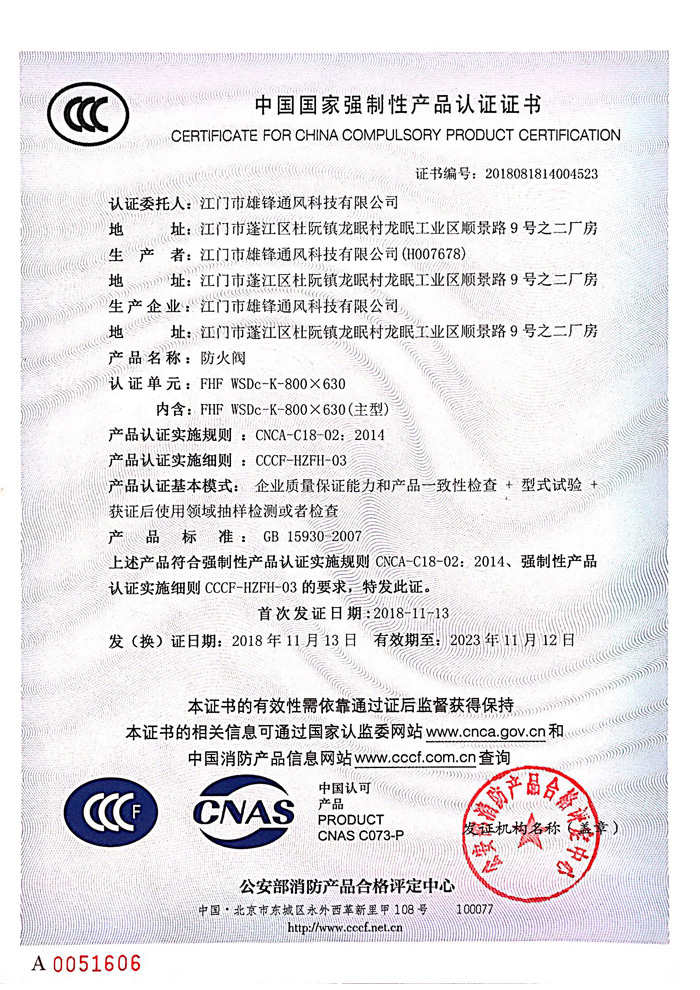 防火閥產(chǎn)品認(rèn)證證書2