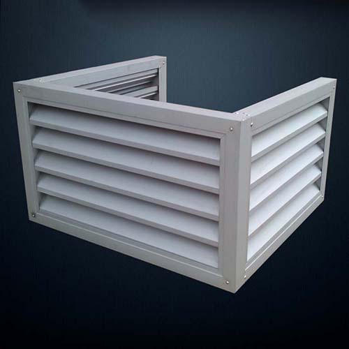 防水百葉,葉片固定式,其葉片傾斜45度設計成特別的形狀,具有防水濺入內(nèi)部的功能。一般作安裝在外墻上的通風口;外墻空調(diào)防水百葉罩,根據(jù)室外空調(diào)主機尺寸定做為開口框架形式,框架之間百葉的連接,既使得外墻美觀;廣泛用于美化小區(qū)樓盤,遮掩室外空調(diào)主機,美化樓宇建筑的外觀。